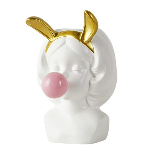 Cute Bubble Blowing Girl Pen Holder Makeup Brush Storage Decorative Vase Resin Decoration Props White Rabbit Ears 1 Walmart Com